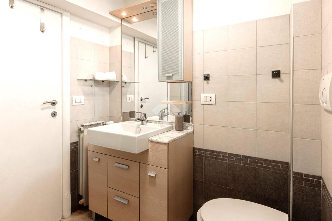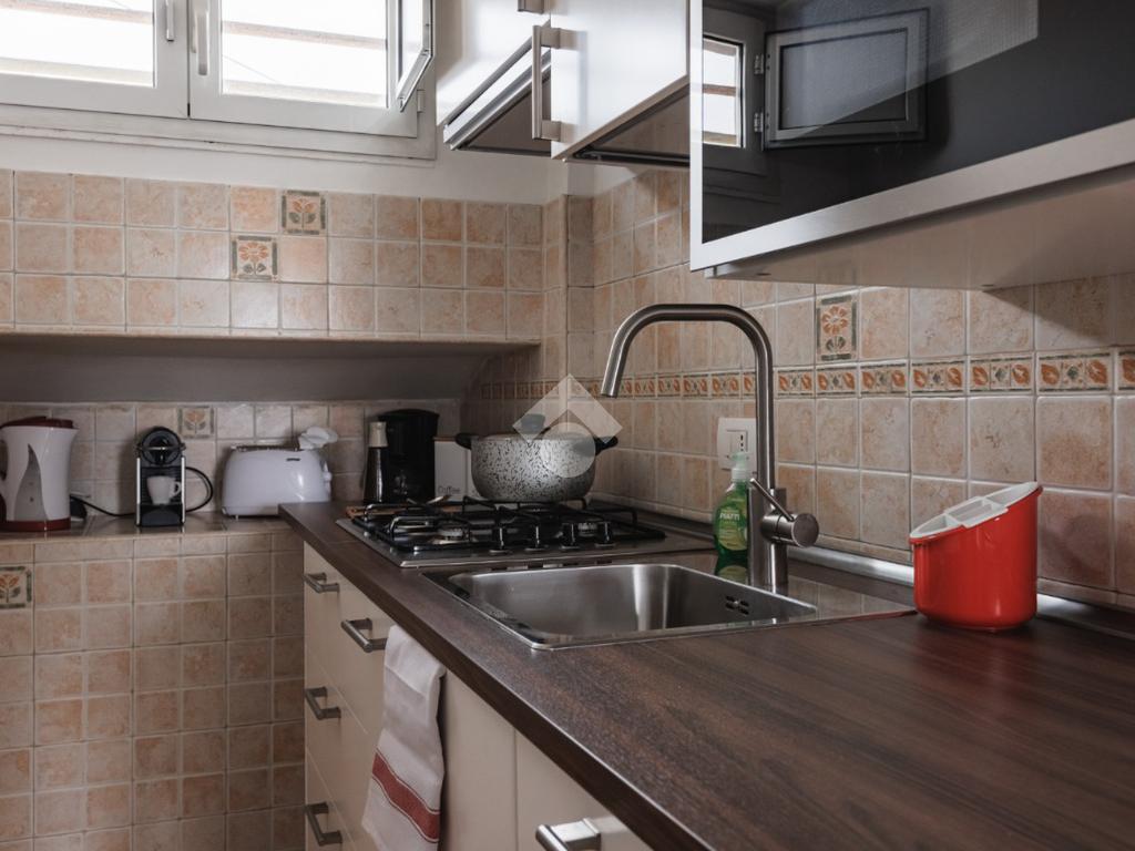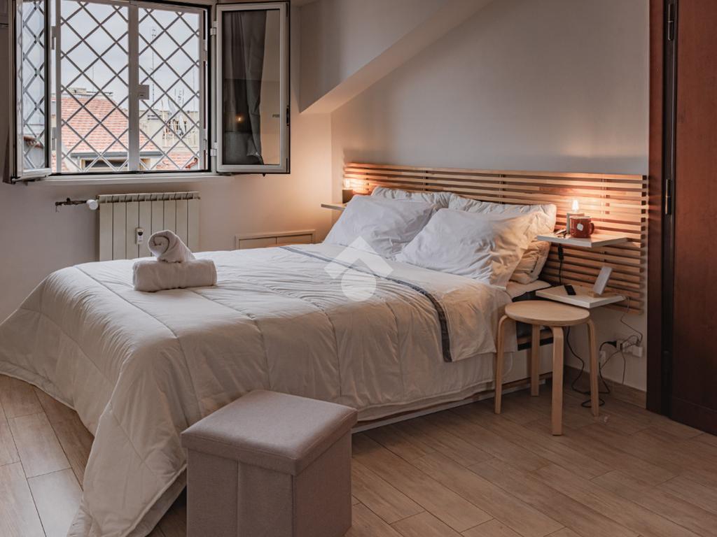 L'immobile è situato all'interno di un palazzo in cortina situato al 9 piano con ascensore. Si tratta di una monocamera di 32 mq composta da: un open space con angolo cottura, bagno e terrazzo condomimiale. L'immobile è stato ristrutturato nel 2022, con pavimenti laminati e infissi in alluminio doppio vetro. Gode di una doppia esposizione a Ovest e ad Est, con riscaldamento centralizzato e impianto di condizionamento. Attualmente è utilizzato come struttura ricettiva. Per la vendita si considera sia l'appartamento con l'attività ricettiva compresa, che solo l'appartamento.